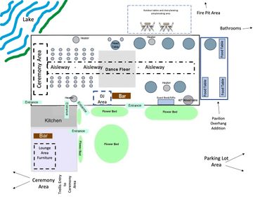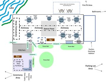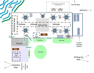 Tables: Please do not drag tables across the dance floor or the pavilion wooden floor. It can cause marks or may even scratch/gauge the floor and may be very costly to repair. If you wish to move a table, please have two people lift it (on each end) without any big or heavy items on it (also don't want to risk the table legs collapsing if you move it with heavy items). --Please do not steam or iron tablecloths directly on our tables. It may damage our tables and you would be responsible for the repair or replacement costs.